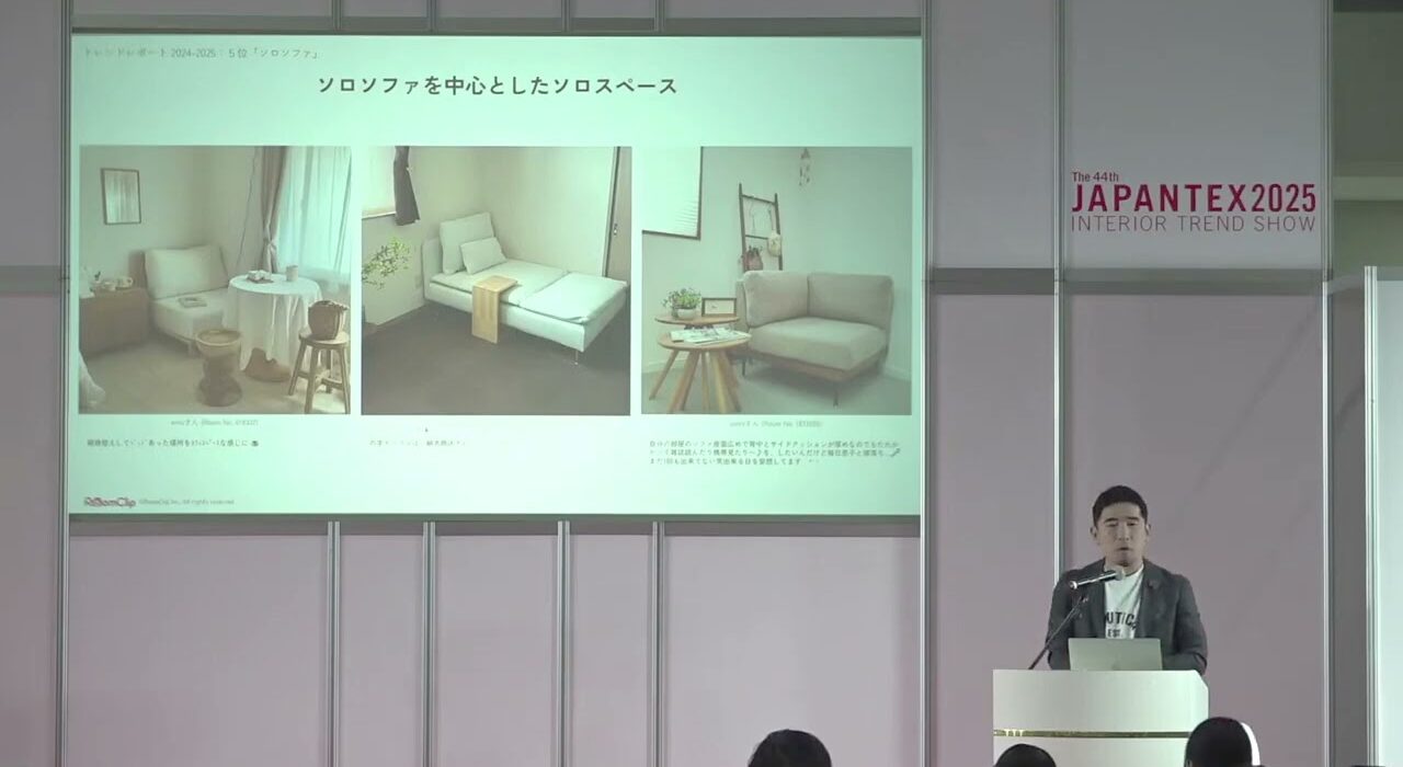 movies, movies2025, seminar2025 / 2025年12月10日 データで読み解く!“幸せを紡ぐ”住まい&インテリアトレンド最前線 2025 データで読み解く!“幸せを紡ぐ”住まい&インテリアトレンド最前線 2025 600万人が使う住まい専門 SNS「RoomClip」から見える住まい・暮らしのトレンド&新定番とは 住まいづくりのトレンドは大きく変化し、新たな定番も次々と生まれています。「ヌック」「アウトドアリビング」から「マルチレトロ」「豊かな時間」まで、「RoomClip」の豊富なデータをもとに、現代の住まいづくりの新たなキーワードとその本質的なニーズを徹底解説します。 川本 太郎 KAWAMOTO Taro ルームクリップ(株) 執行役員CBO 2007年日本経済新聞社入社。消費産業部(現企業報道部)にて小売業・インターネット産業の取材を担当。2013年Tunnel株式会社(現ルームクリップ株式会社)に参画。2015年にセールスチームを立ち上げ、担当役員に就任。2021年にRoomClip住文化研究所を立ち上げ。同年執行役員CBOに就任。 JAPANTEX2025セミナー動画一覧へ 動画一覧へ Share on: NIF administrator